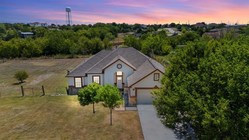 Experience peaceful living in Del Valle with this spacious 4 bedroom, 2 bathroom home, built in 2005 and offering 1,649 square feet of comfortable living space. The open floor plan is filled with natural light and features a welcoming living room with a cozy wood-burning fireplace, graceful arched entryways, and a well-appointed kitchen with stainless steel appliances, stylish black cabinetry, and generous storage. Outside, a custom two-car garage provides ample room for vehicles plus a bonus workspace. Set on a full acre, the property offers endless possibilities for outdoor enjoyment, gardening, or future additions. Vacant and move-in ready, this home is easy to show and ready for its next chapter.