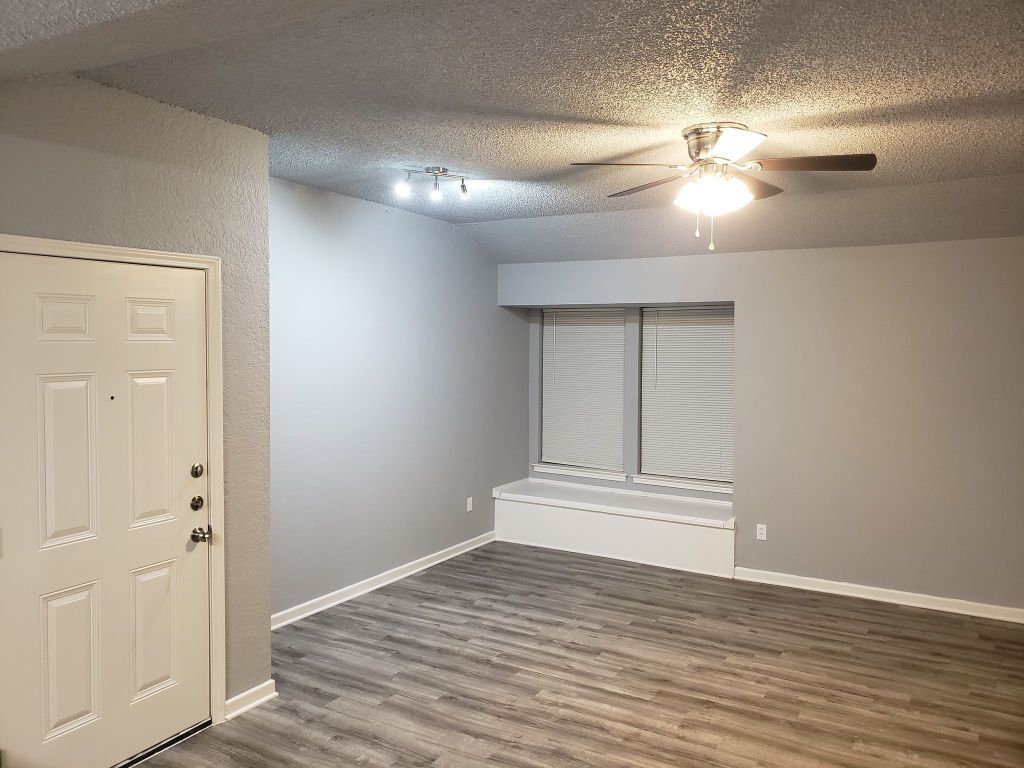 Practical 2-bedroom condo in the heart of San Marcos! This well-maintained unit features updated vinyl plank flooring throughout the unit for easy maintenance and a polished look. The kitchen has ample cabinet and counter space, with a recently-replaced microwave and a walk-in pantry. The large living room is open to the kitchen, and has a window seat that works great as a study nook. An in-unit laundry closet makes chores a breeze, and the washer, dryer, and refrigerator all convey. Two large bedrooms make a great roommate plan, with a large closet, ceiling fan, and window seat in both bedrooms. The full bath is clean and spacious. Recent community renovations include new roof and soffit in 2024. Special zero down financing available on one of the lowest prices in all of Hays County, check it out today!