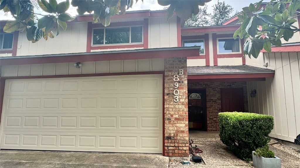 Nestled in north central Austin, Texas, the condominium at 8903 Trone Circle, Unit B, in the 78758 zip code, offers an inviting home that is ready to move in. The living room serves as a focal point, featuring a fireplace that promises cozy evenings, accompanied by the architectural intrigue of a vaulted ceiling, a high ceiling, a skylight, and a beamed wood ceiling. In the kitchen, form meets function with a backsplash, kitchen peninsula, tray ceiling, skylight, and a wall chimney range hood, creating an inspiring space for culinary exploration. The bathrooms provide a serene escape, featuring tiled showers that offer a spa-like experience. The condominium includes three bedrooms, each offering a personal retreat, one of which boasts the added convenience of an ensuite bathroom. Complementing the interior is an outdoor patio, perfect for enjoying the outdoors, along with the community pool that is mere steps away, providing a refreshing escape during the Texas summers. This home also offers the convenience of two garage spaces and appliances to include, refrigerator, washer, and dryer. Built in 1973, this residence offers a blend of established charm and modern convenience. This condominium offers a unique opportunity to embrace a comfortable and connected lifestyle in one of Austin's most desirable locations.